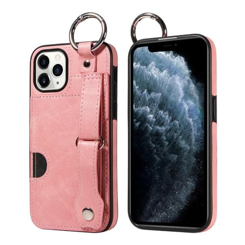 Funda para Teléfono iPhone 11 Pro con Anillo y Ranura para Tarjeta con Textura de Pantorrilla (Rosa)