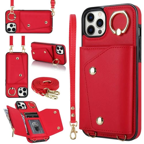 For iPhone 11 Pro Zipper Phone Case with Double Lanyard (Red)