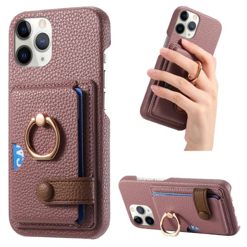 Funda para Teléfono iPhone 11 Pro con Parte Posterior de Tarjeta y Anillo de Borde de Cuero Litchi (Albaricoque Azufaifo)