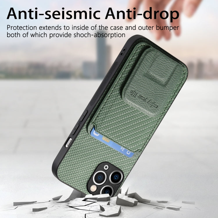 Funda para Teléfono iPhone 11 Pro con Soporte Plegable y Bolsa para Tarjetas de Fibra de Carbono (Verde)