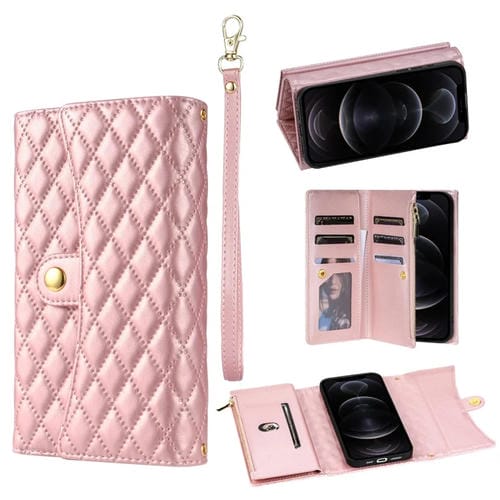 Funda para Teléfono iPhone 11 Pro Cuero Rómbico Billetera MultiTarjeta con Cremallera (Oro Rosa)