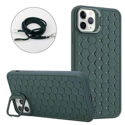 Funda para Teléfono iPhone 11 Pro Honeycomb Radiating Holder TPU con Cordón (Verde)
