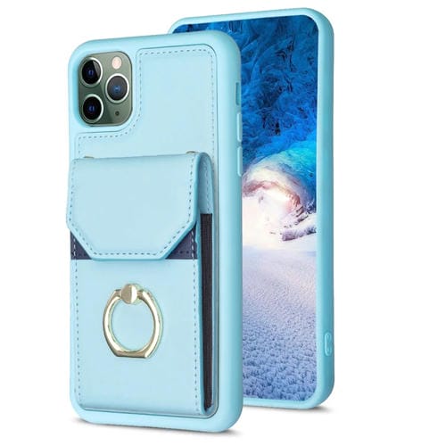 For iPhone 11 Pro Max BF29 Phone Case with Ring Holder and Organ Card Bag (Blue)