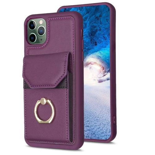 For iPhone 11 Pro Max BF29 Phone Case with Ring Holder and Organ Card Bag (Dark Light)