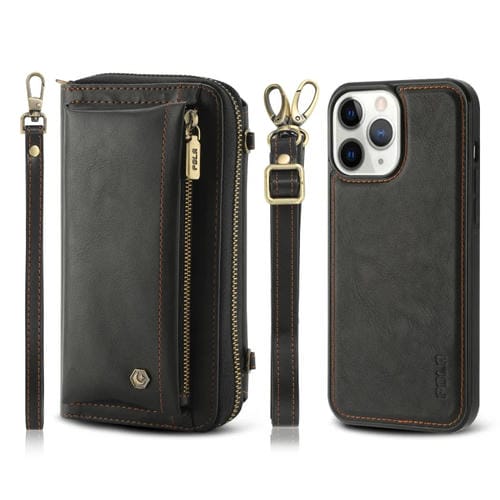 Funda para iPhone 11 Pro Max Crossbody de Cuero con Billetera y Cremallera Multifuncional (Negro)