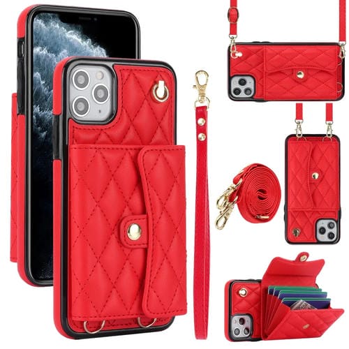 For iPhone 11 Pro Max Crossbody Rhombic Horizontal Wallet Leather Phone Case(Red)