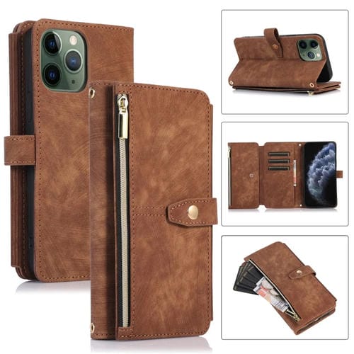 Funda de Cuero para Teléfono iPhone 11 Pro Max Dream 9-Card Wallet Zipper Bag (Marrón)