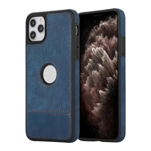 Caja de teléfono para iPhone 11 Pro Max Empalme Costura de PU con Recorte (Azul)