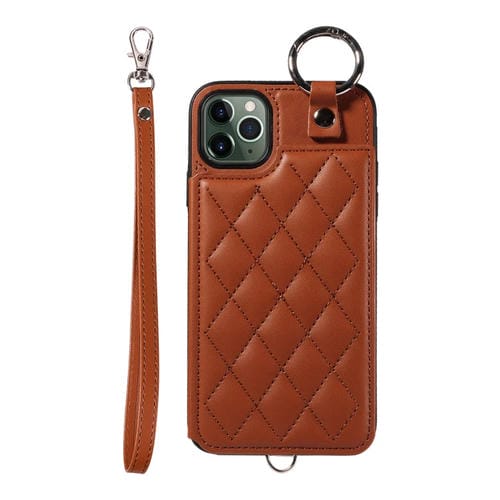 Estuche para Teléfono iPhone 11 Pro Max con Bolsa para Tarjetas Textura Rómbica y Cordón Corto (Marrón)