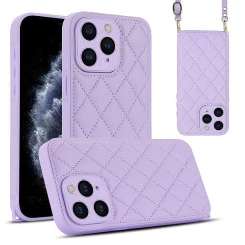 Estuche para Teléfono iPhone 11 Pro Max con Textura Rómbica y Cordón Doble (Púrpura)