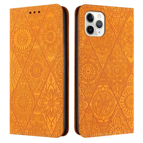 Estuche para teléfono iPhone 11 Pro Max Cuero Adsorción en relieve étnico (Amarillo)