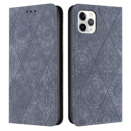 Estuche para Teléfono iPhone 11 Pro Max Cuero Adsorción Relieve Étnico (Gris)