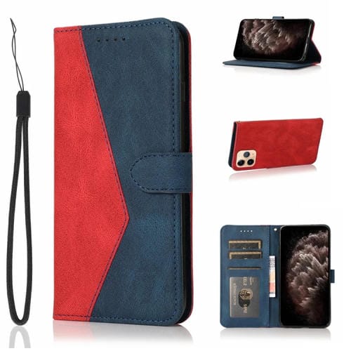 Estuche para Teléfono iPhone 11 Pro Max Cuero con Costuras Dos Colores (Rojo Azul)