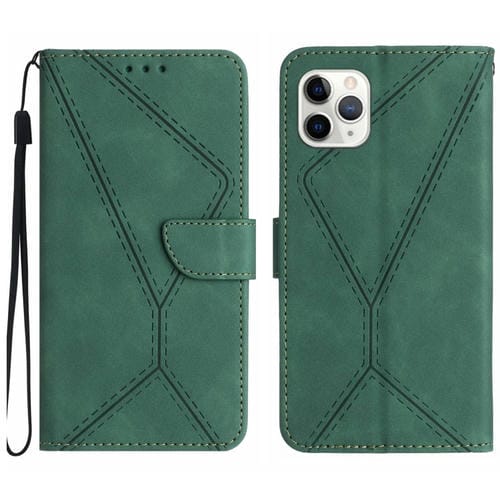 Estuche para teléfono iPhone 11 Pro Max cuero con costuras en relieve (Verde)