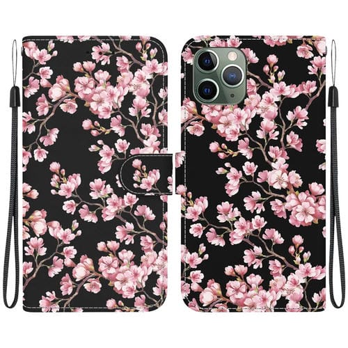 Estuche para teléfono iPhone 11 Pro Max Cuero con Dibujo Coloreado y Textura de Cristal (Flor de Ciruelo)