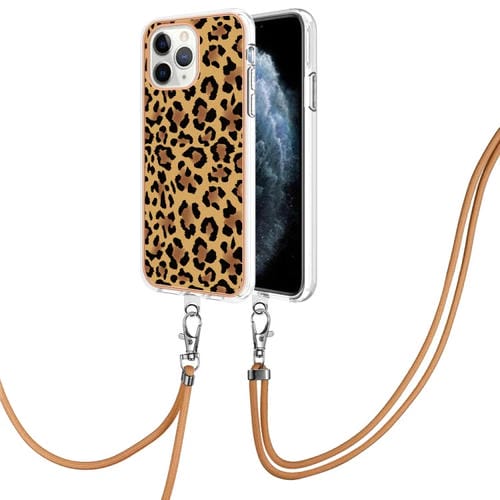 Estuche para teléfono iPhone 11 Pro Max IMD doble cara con galvanoplastia y cordón (Estampado de leopardo)