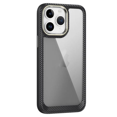 Caja del Teléfono para iPhone 11 Pro Max Fibra de Carbono con Panel Posterior Transparente (Negro + Negro Transparente)