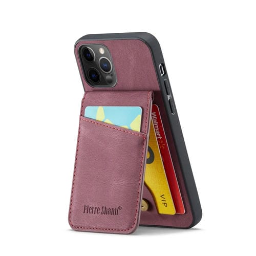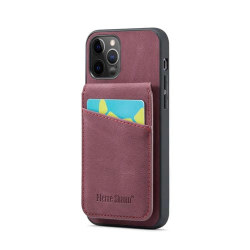 Funda para teléfono Fierre Shann Crazy Horse Tarjetero Contraportada para iPhone 11 Pro Max (Rojo Vino)