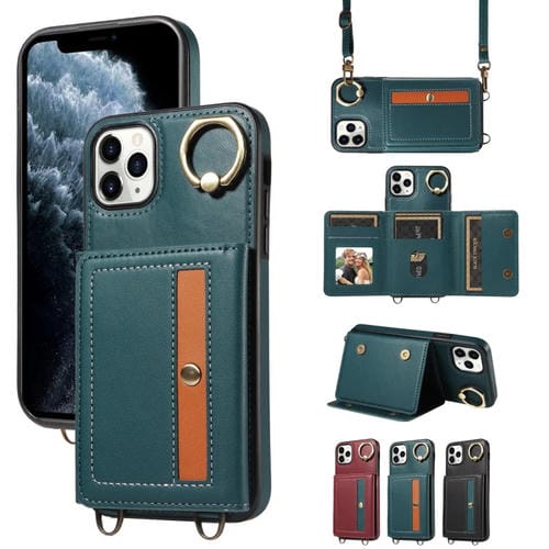 Funda para iPhone 11 Pro Max Cruzada con Soporte para Anillo y Tarjeta (Verde)