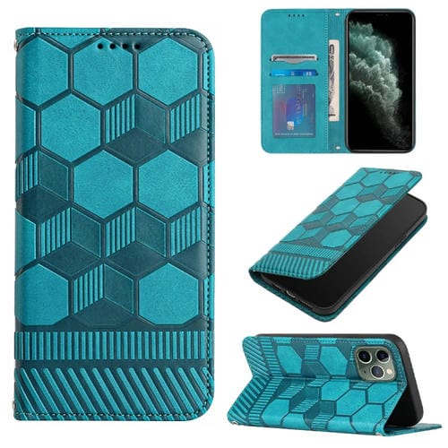 Funda de teléfono iPhone 11 Pro Max tapa cuero magnético textura fútbol (Azul Claro)