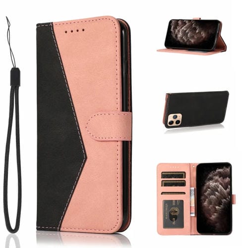 Funda de Teléfono iPhone 11 Pro Max Cuero Costuras Dos Colores (Oro Rosa Negro)