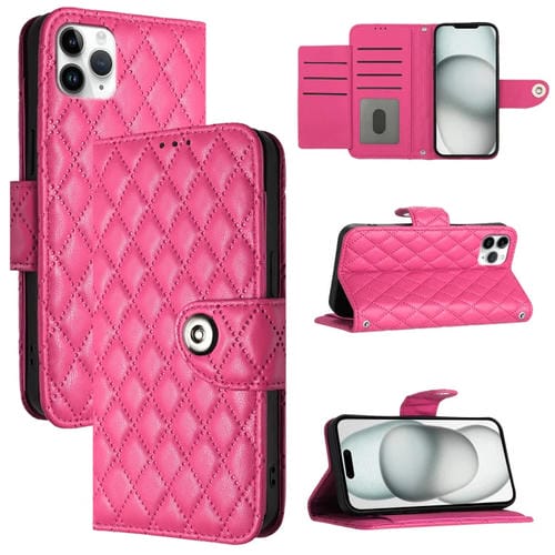 Funda para Teléfono iPhone 11 Pro Max con Tapa de Cuero Textura Rómbica y Cordón (Rojo Rosa)