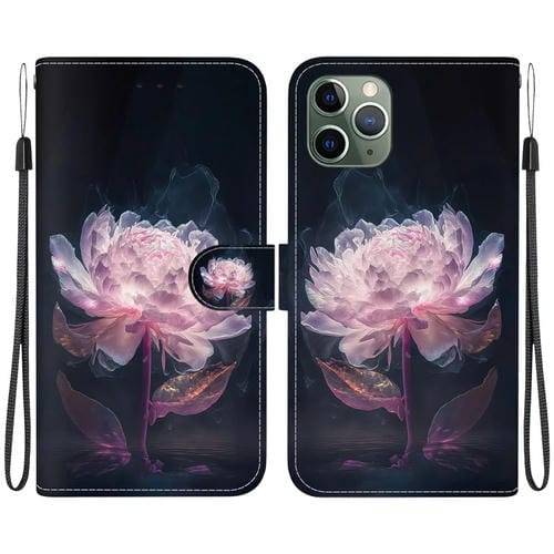 Funda para Teléfono iPhone 11 Pro Max Cuero Dibujo Coloreado Textura de Cristal (Peonía Púrpura)