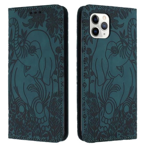 Funda para Teléfono iPhone 11 Pro Max Cuero con Relieve de Elefante Retro (Verde)