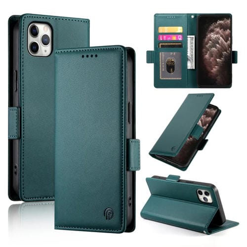 Funda para Teléfono iPhone 11 Pro Max Cuero Esmerilado Magnético Hebilla Lateral (Verde Oscuro)