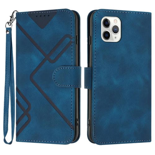 Funda para iPhone 11 Pro Max Line Pattern Skin Feel Leather Phone Case (Royal Blue)