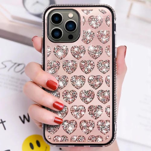 Funda para Teléfono TPU Love Hearts Diamond Mirror para iPhone 11 Pro Max (Oro Rosa)