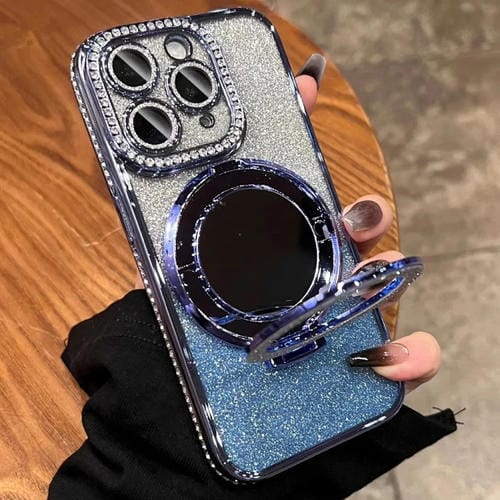 Funda para Teléfono iPhone 11 Pro Max Magsafe Rhinestone Mirror Glitter TPU (Azul Sierra)