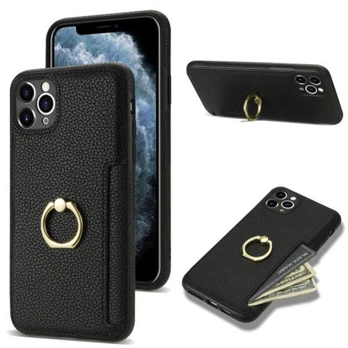 Funda Trasera iPhone 11 Pro Max Ring Card Litchi Cuero (Negro)