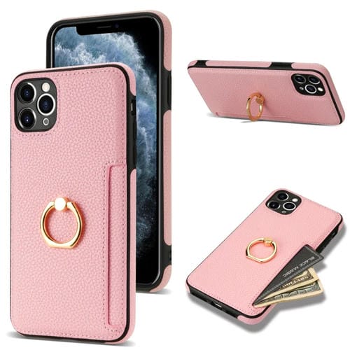 Funda Trasera para iPhone 11 Pro Max Ring Card Litchi Cuero (Rosa)