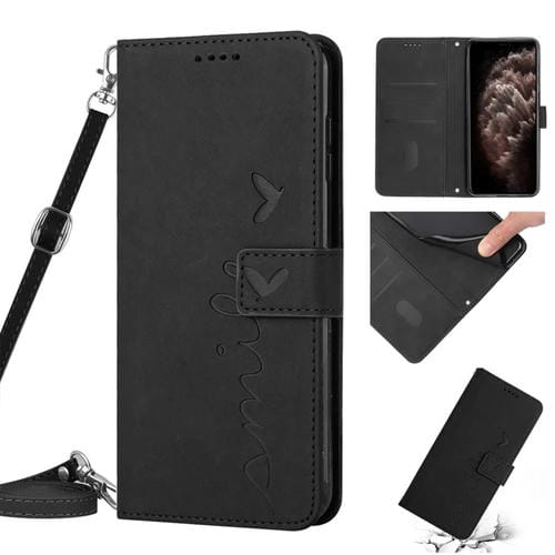 Funda de Cuero para iPhone 11 Pro Max Skin Feel Heart Pattern con Cordón (Negro)