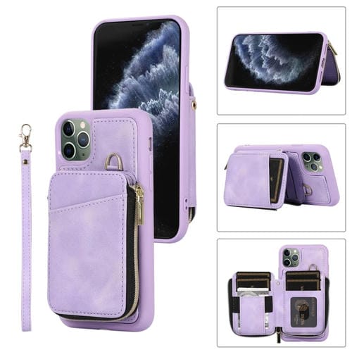 Funda para Teléfono iPhone 11 Pro Max Zipper Card Bag Contraportada (Púrpura)