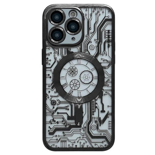 Caja del Teléfono iPhone 11 Pro Patrón de Placa de Circuito Electrochapado Magsafe (Negro)