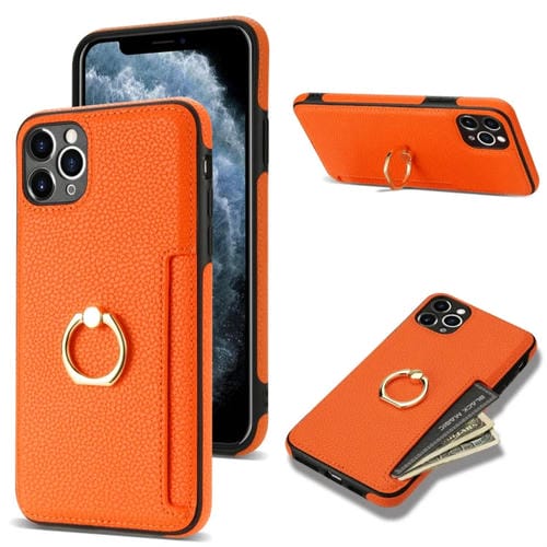 Funda Trasera para iPhone 11 Pro Ring Card Litchi Cuero (Naranja)