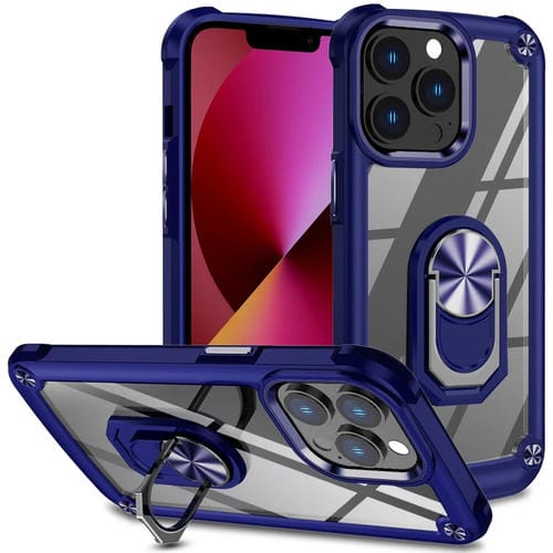 Estuche para Teléfono iPhone 11 Pro TPU + PC con Protección de Lente y Soporte para Anillo (Azul)