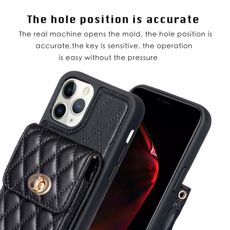 For iPhone 11 Pro Vertical Metal Buckle Wallet Rhombus Leather Phone Case(Black)