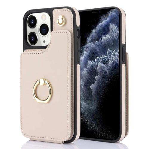 For iPhone 11 Pro YM005 Skin Feel Card Bag Phone Case with Long Lanyard (Apricot)