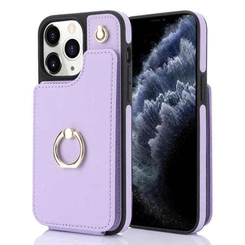 For iPhone 11 Pro YM005 Skin Feel Card Bag Phone Case with Long Lanyard (Light Purple)