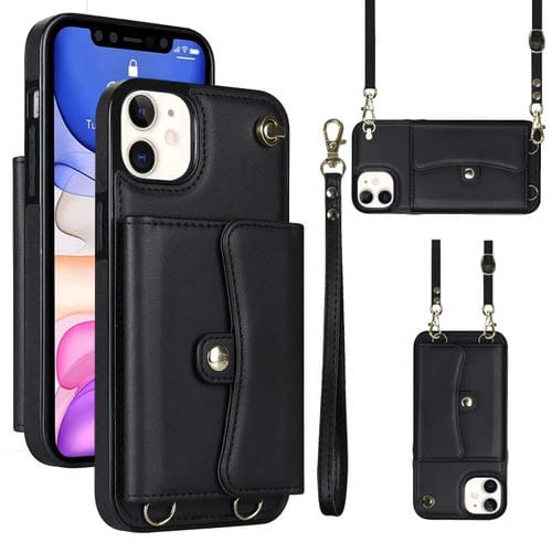 Estuche para Teléfono iPhone 11 Ranura Tarjeta RFID con Cordón Largo (Negro)
