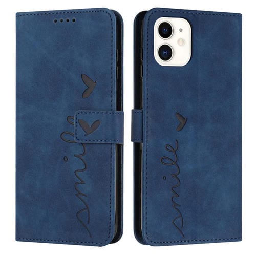 Funda de Cuero para Teléfono iPhone 11 Skin Feel Heart Pattern (Azul)