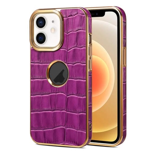 Funda para Teléfono Denior iPhone 12/12 Pro Galvanoplastia Cuero Genuino Textura Cocodrilo (Púrpura)