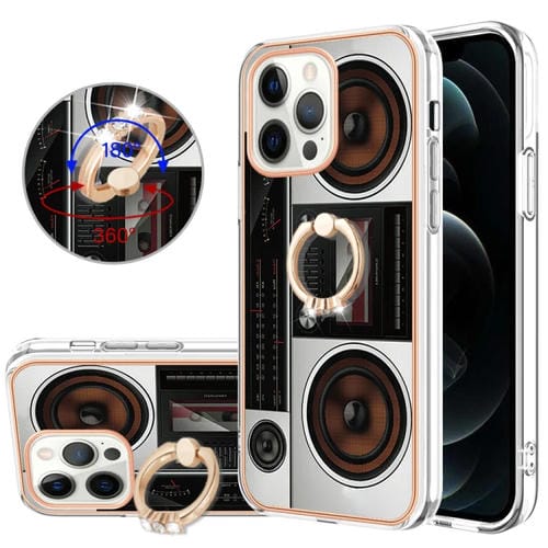 Estuche para teléfono iPhone 12/12 Pro IMD doble cara galvanoplastia con soporte para anillo (Radio Retro)