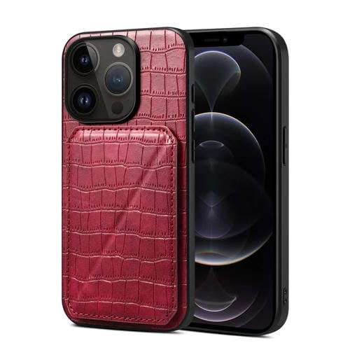 Funda Trasera iPhone 12/12 Pro Piel de Cocodrilo de Imitación con Soporte (Rojo Rosa)