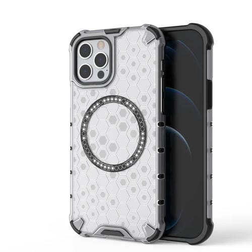 For iPhone 12/12 Pro Honeycomb Magnetic Ring Shockproof Phone Case (White)