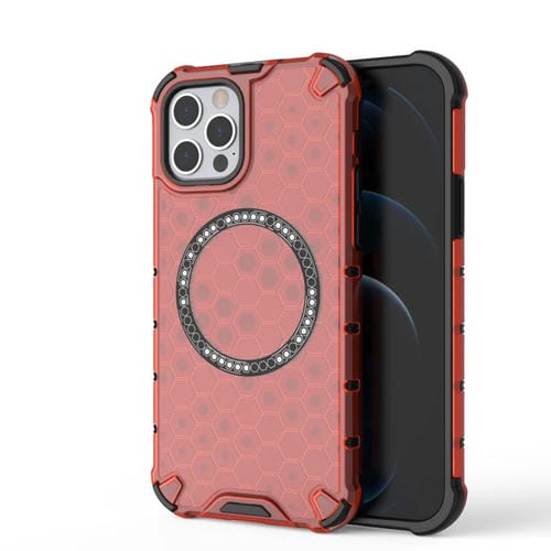 For iPhone 12/12 Pro Honeycomb Magnetic Ring Shockproof Phone Case (Red)