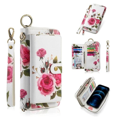 For iPhone 12/12 Pro POLA MagSafe Flower Leather Phone Case with Multifunctional Zipper Wallet (Beige)